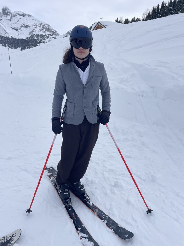 Mercredi, il a neigé toute la nuit mais il fait beau, donc je chausse mes skis aussi! Mais avant, je prends soin de m’équiper! 🤣