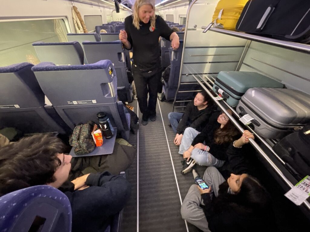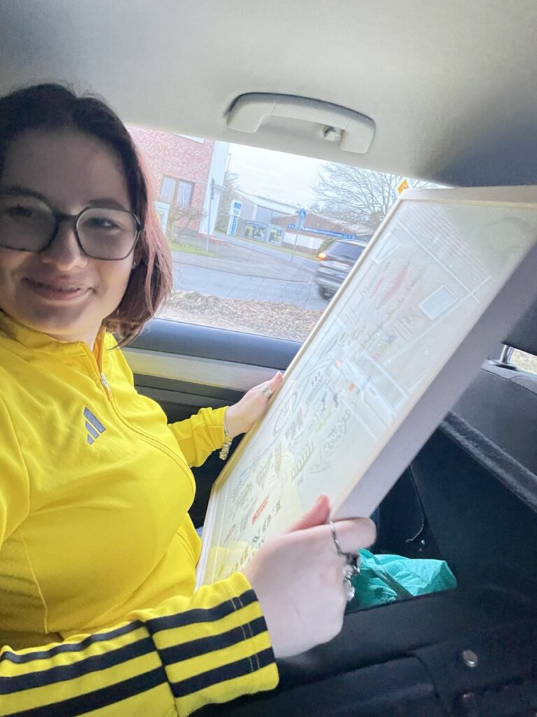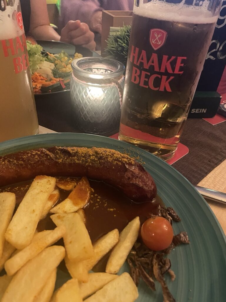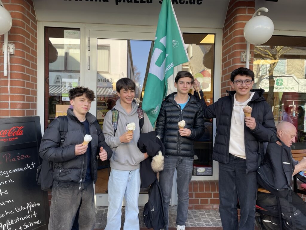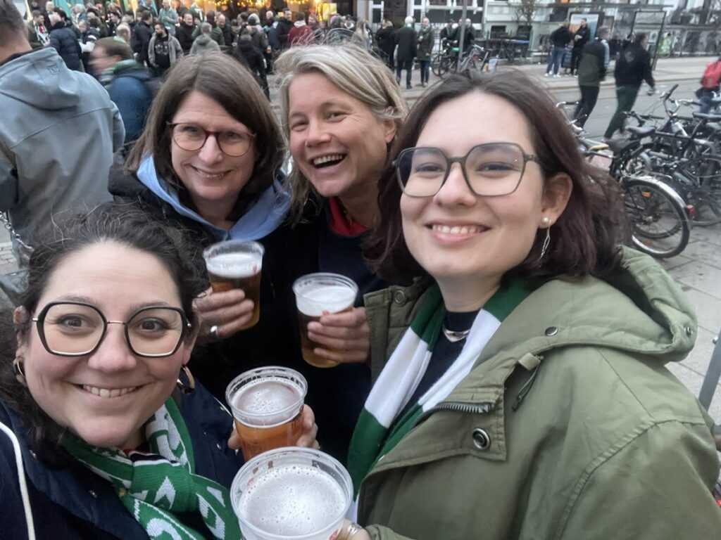 On les récupère ensuite pour courir à la gare et choper un train pour Brême où nous devons visiter le Weser Stadion. Confortablement installés dans le train: alerte à la bombe dans la gare de Brême, tous les trains restent où ils sont… vite, le plan B: une glace au son des chants de supporters! 🥳