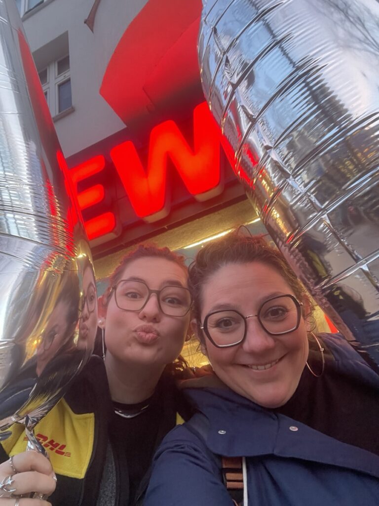 Lundi matin, à 6h50 on était à l’ouverture du supermarché du coin pour faire gonfler 2 ballons énormes, sous le signe de l’amitié franco allemande!