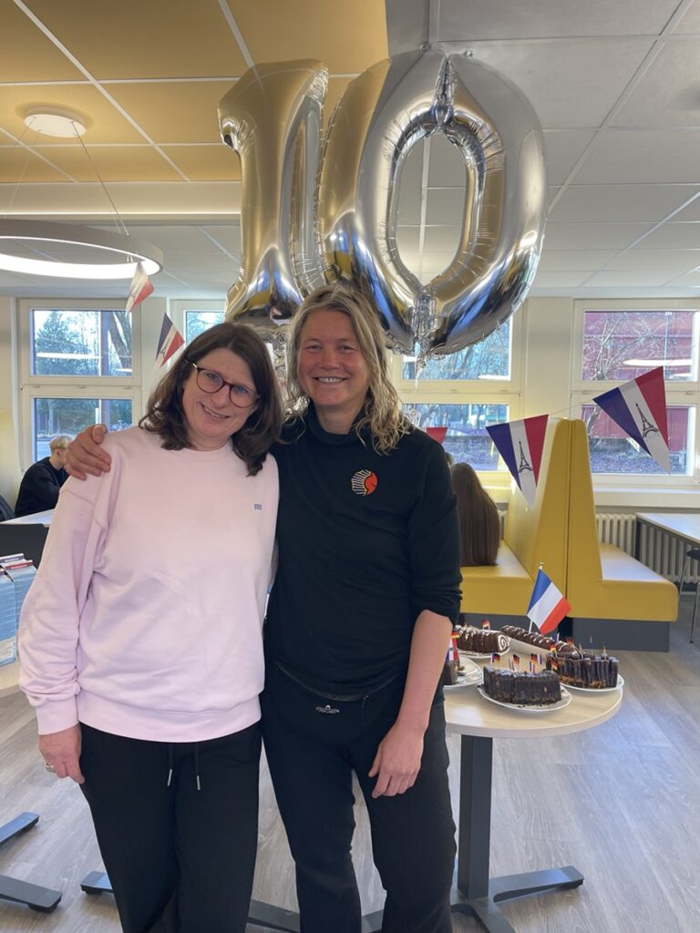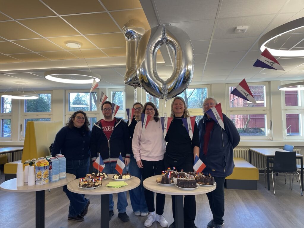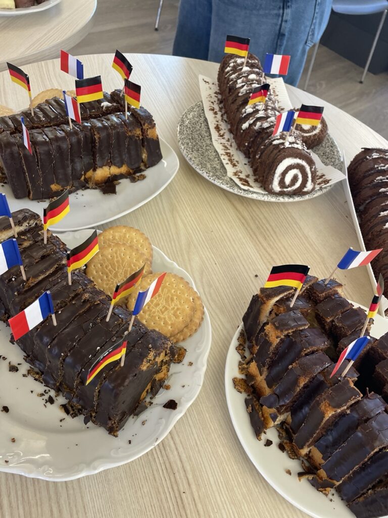 Puis je suis aller en cours avec Christian pour parler d’orientation en France à 12 élèves de 16 ans qui avaient préparé des gâteaux… 🥰. Et à chaque cours en Allemagne, je m’interroge… le niveau d’énergie que je déploie à chaque heure de cours par rapport à mon homologue allemand est complètement disproportionné…. S’il devait faire cours d’une heure à 29 ou 30 gamins qui n’écoutent rien de 8h à 17h, et être payé la moitié de son salaire, il serait en burn-out en 3 jours… et je ne parle pas du confort de leurs salles et espaces de travail. Bref. Je n’arrive pas à m’y faire..
