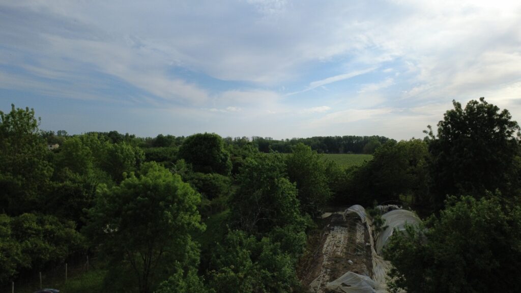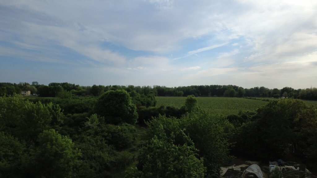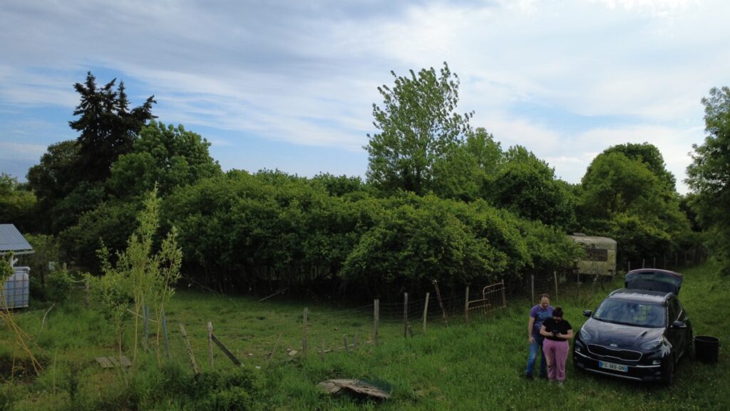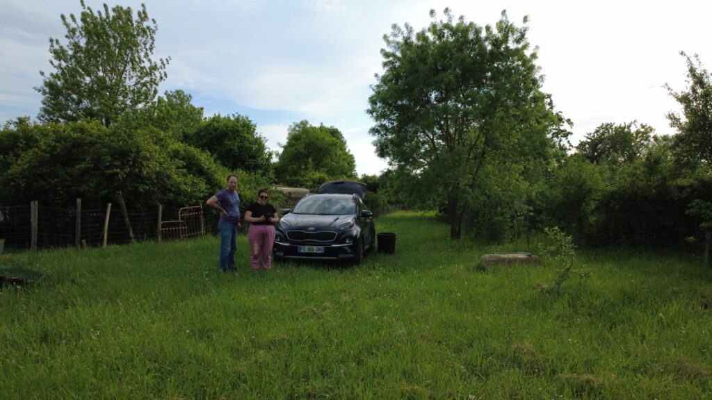 On est allé s’entraîner à faire voler le drone au verger (mon cadeau d’anniv!).