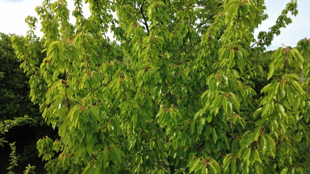 Mais j’ai approché le haut du cerisier et je l’ai fait atterrir sur le capot de la voiture!