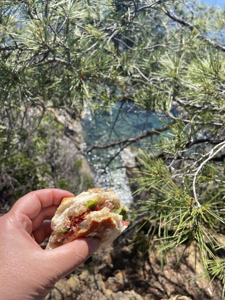 On poursuit donc à pied vers la pointe du Layet et là, le spot est top! On sort donc nos pan bagnat!