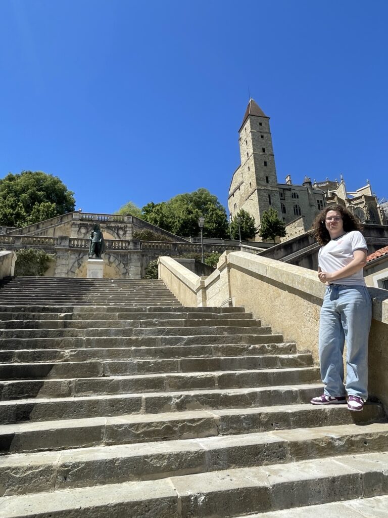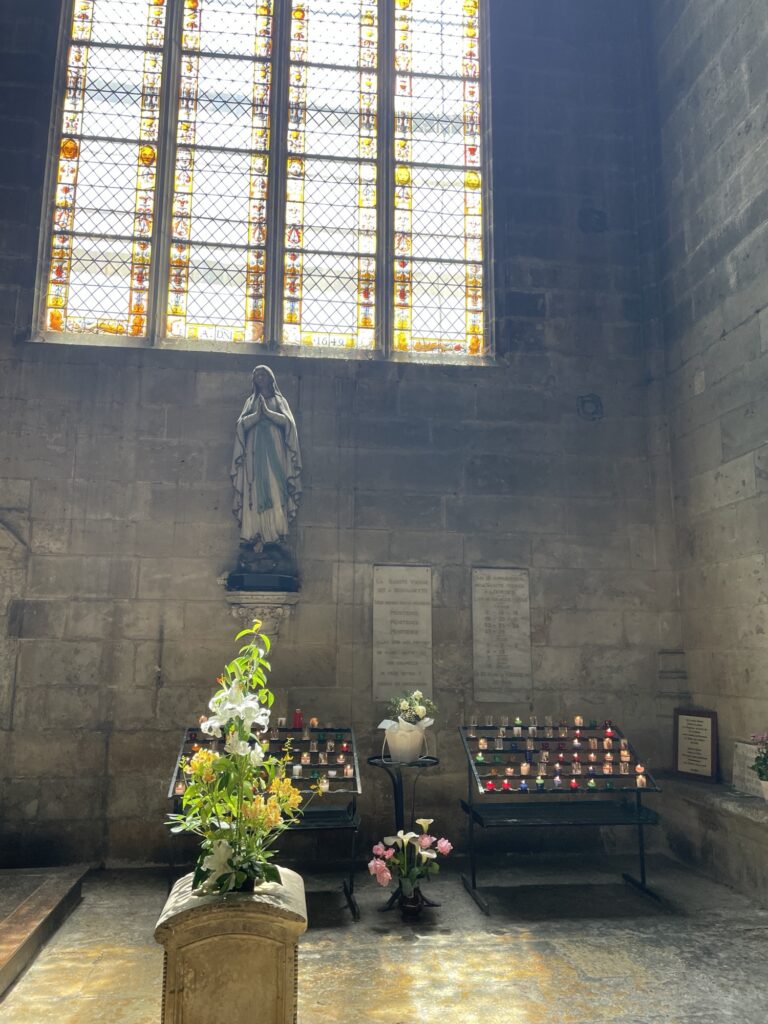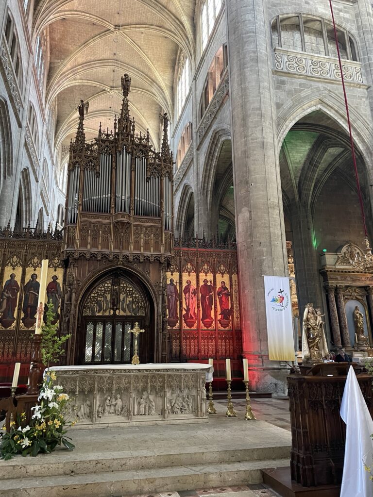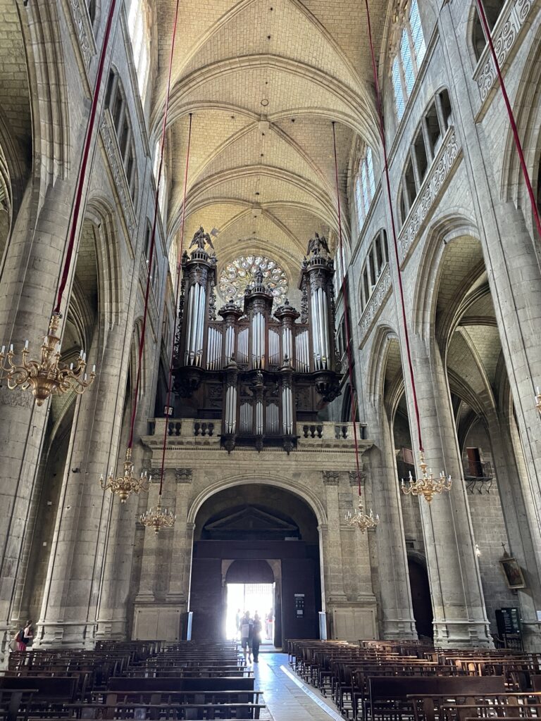 Nous arrivons au terme des 374 marches et la fraîcheur de la cathédrale sainte Marie d’Auch nous tend les bras… on est sur le chemin de Compostelle!