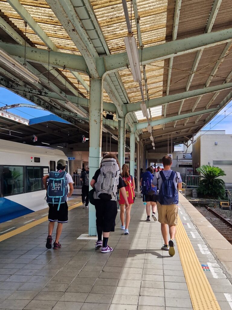Dans le train pour Shimoda, ça se charge… on voit que c est une station balnéaire… 😂