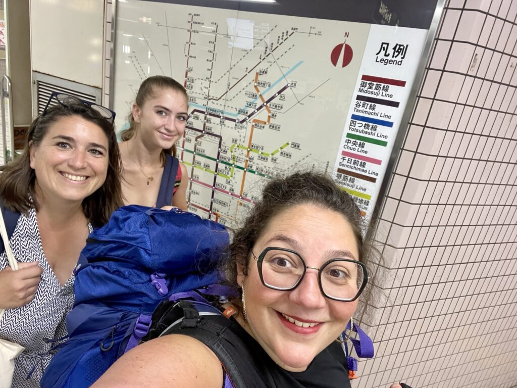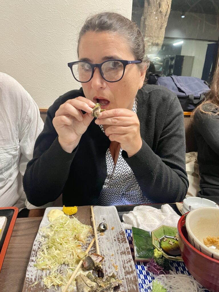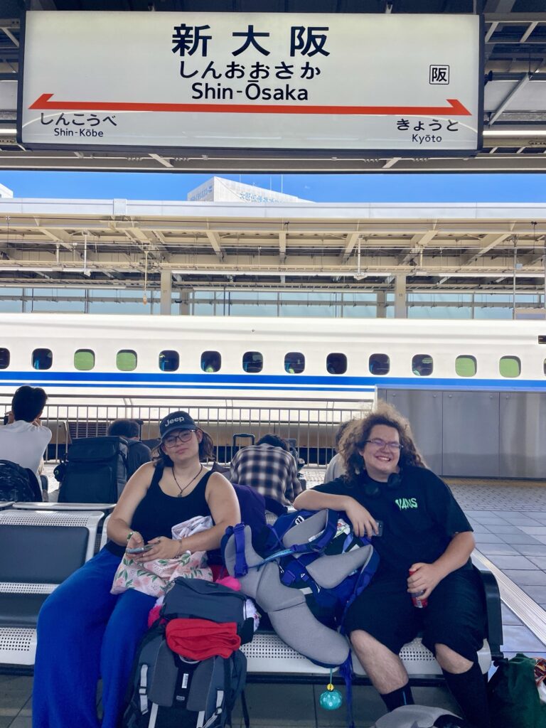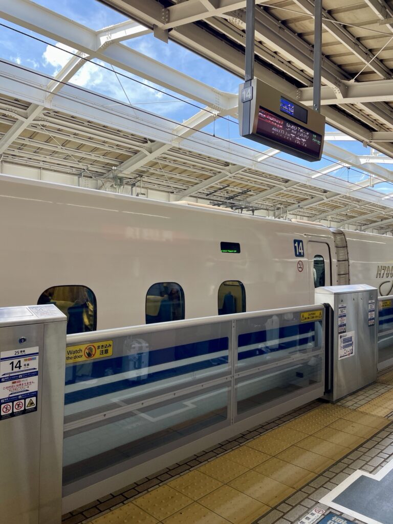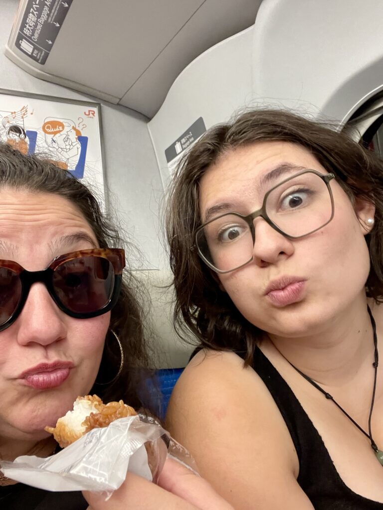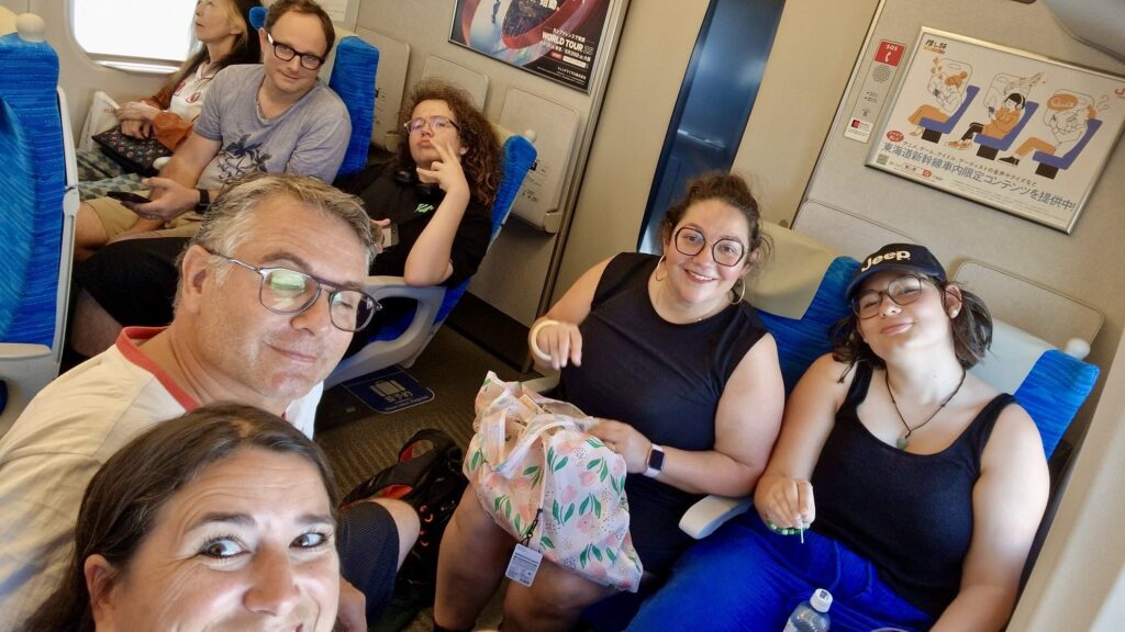 Bref, nous voilà partis, avec pour objectif de laisser la grosse valise à Atami, dans un locker. Oui, les Japonais ont des lockers partout, c’est le bonheur! Ils ont même des lockers réfrigérés 😱. On prend le petit dej tranquillement… (Sylvie a retourné les sièges 😂)…
