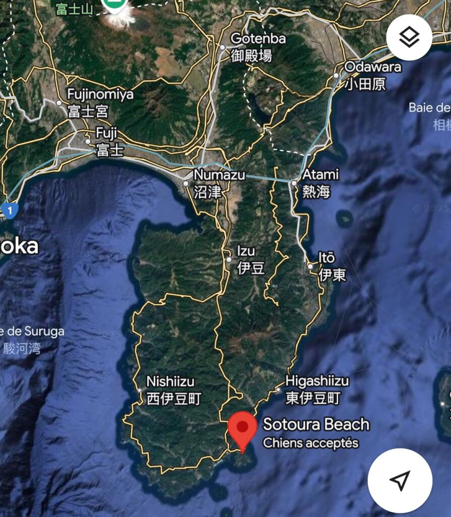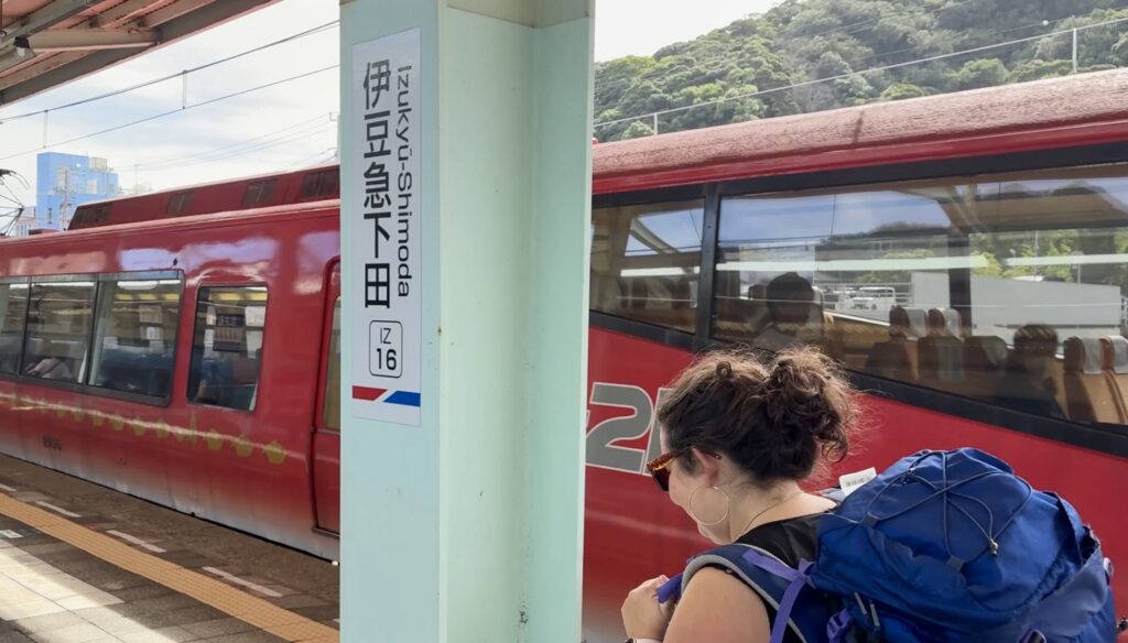 On prend notre Shinkansen pour remonter vers le Nord, direction la péninsule d’Izu! C’est un littoral de stations balnéaires où les Tokyoites passent leurs vacances d’été et leurs WE, on est à 3/4h de la capitale. Sauf que nous, on a ENCORE choisi une secluded place et on est au fin fond de la péninsule!
