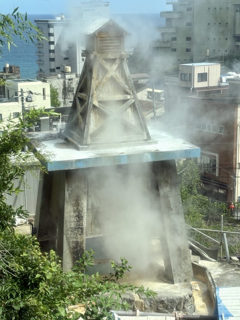 Et aussi un endroit où l’on trouve des Onsen! Depuis la fenêtre, on voit des sources chaudes! Certaines sortent à 100 degrés! évidemment ça attire du monde! Surtout que l’on est sur un long WE férié! Le lundi est férié car c’est la fête de la mer!