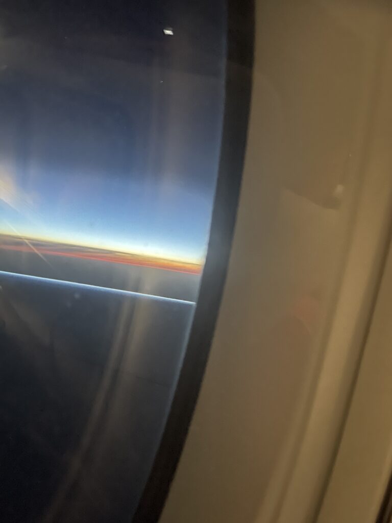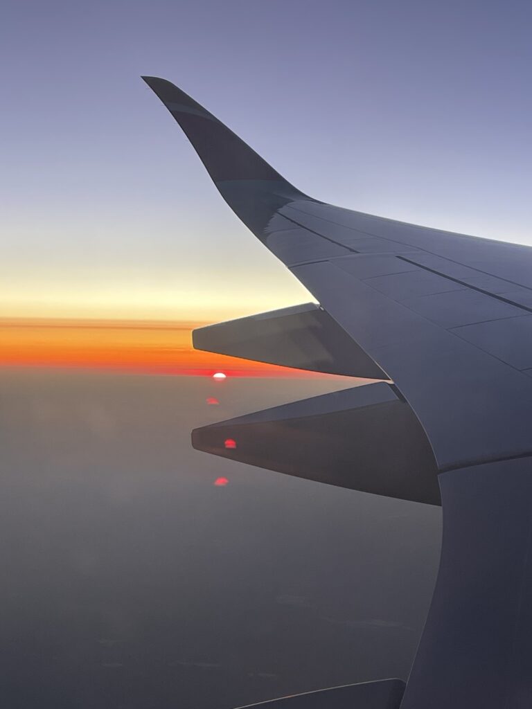 11h50, on embarque dans notre A350 pour un décollage à 13h15 ! On s’aperçoit direct que notre entertainment ne fonctionne pas… on a 20 films et pas de carte ni d’infos alors qu’Octave sur l’autre rangée à 10 000 films, des jeux et des infos… je me dis que les 13h30 vont être très longues… et puis finalement on atterrit sans avoir regardé un seul film… mais le Ken Follett est bien avancé et j’ai pu me reposer, regarder le paysage 😂