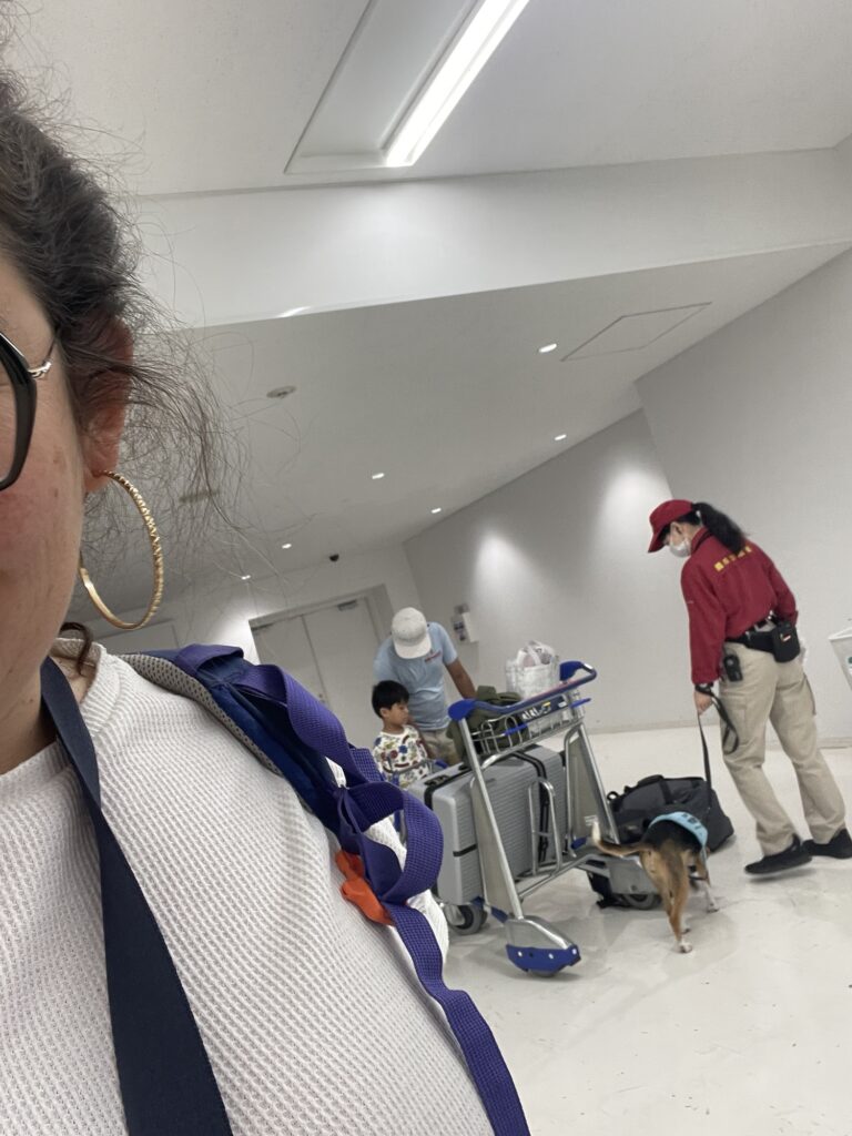 On sort après avoir été reniflé par un petit chien trop mignon qui détecte la nourriture que les gens veulent faire rentrer en douce… alors que c’est strictement interdit!