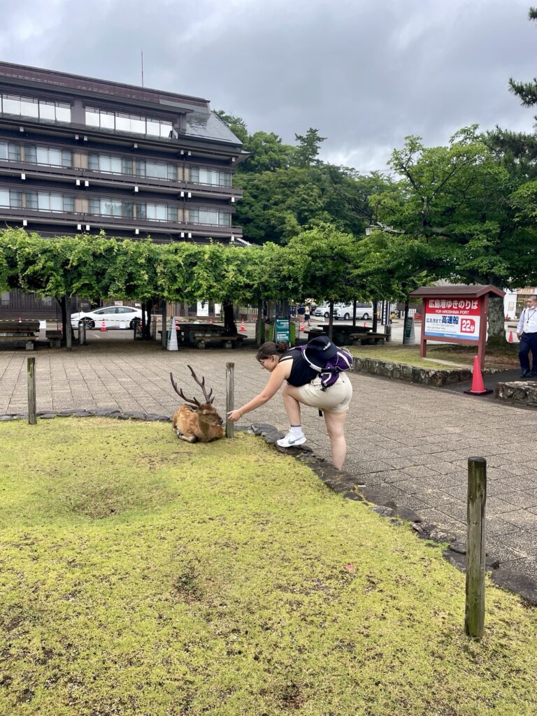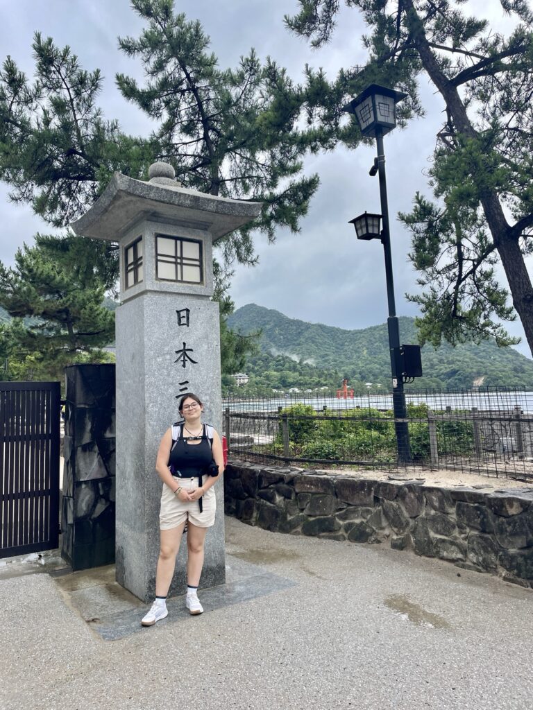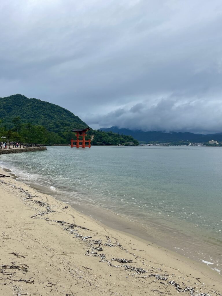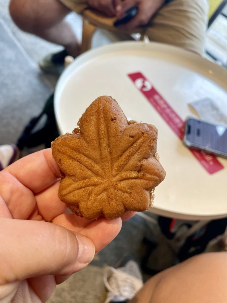 Juste le temps de se réfugier dans un café-boutique pour déguster (comme si on avait faim 😂😂) la spécialité de l’île de Miyajima: le mumiji, une petite pâtisserie en forme de feuille d’érable fourree au chocolat, au matcha, custard cream ou, notre préféré: pâte de haricots rouges (lisse) ou haricots rouges broyés! et en plus, la boutique les confectionne donc ils sont chauds 👌