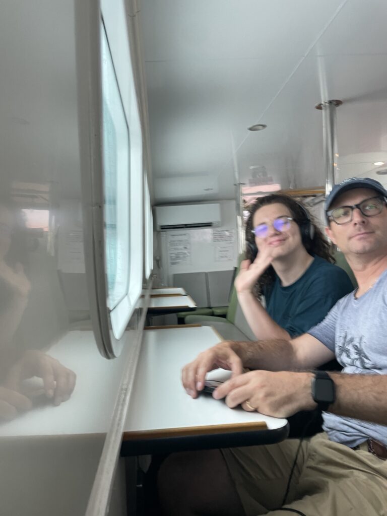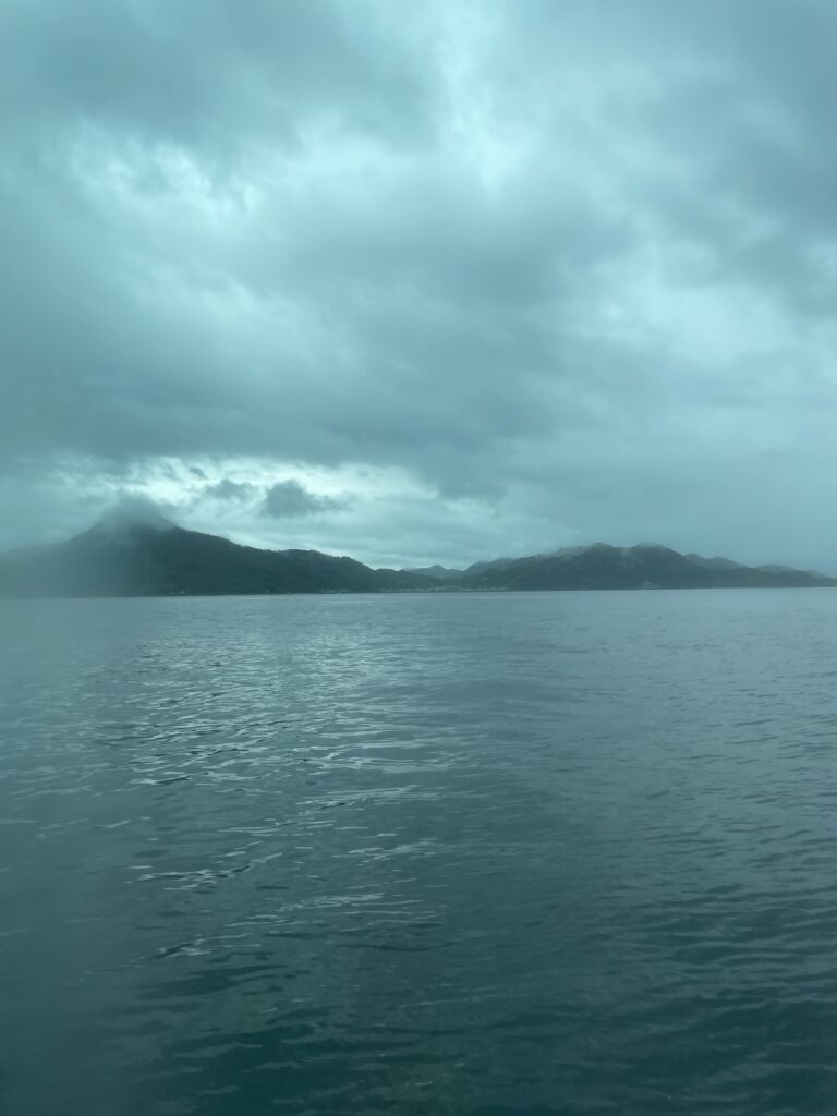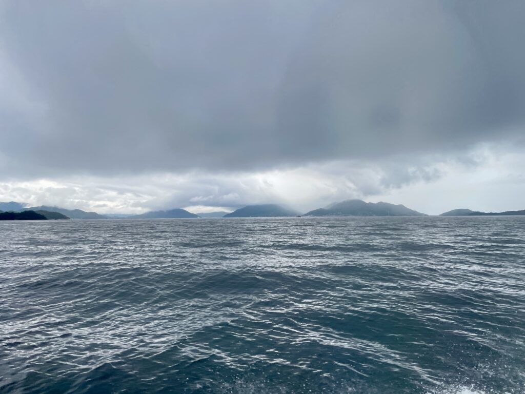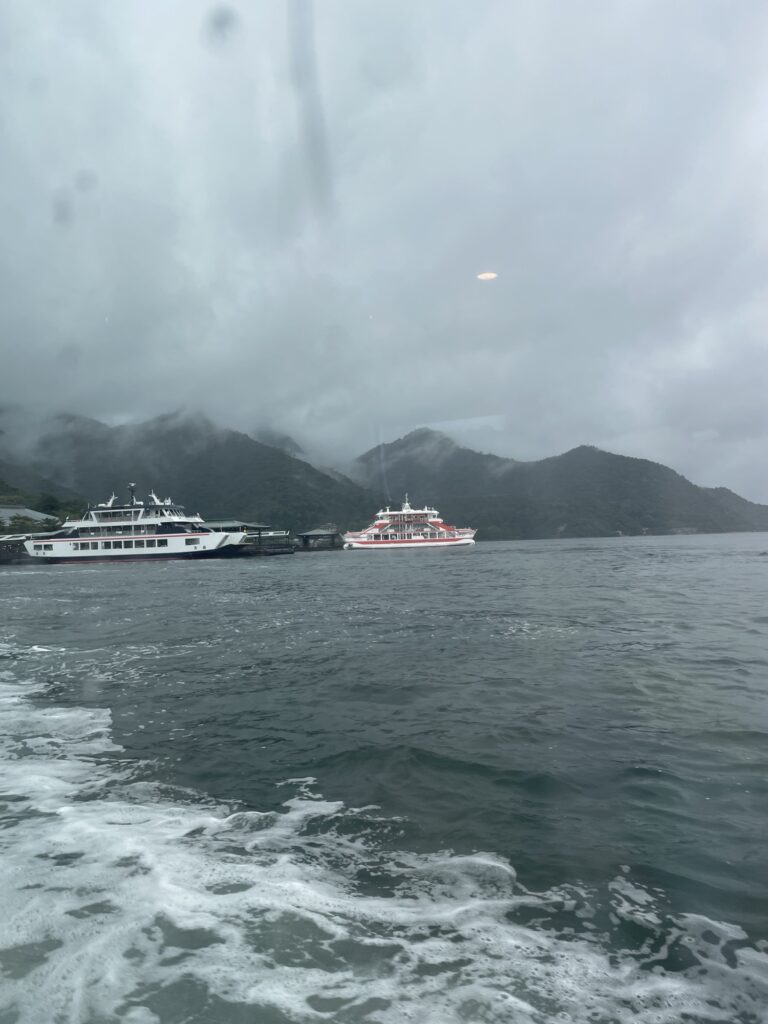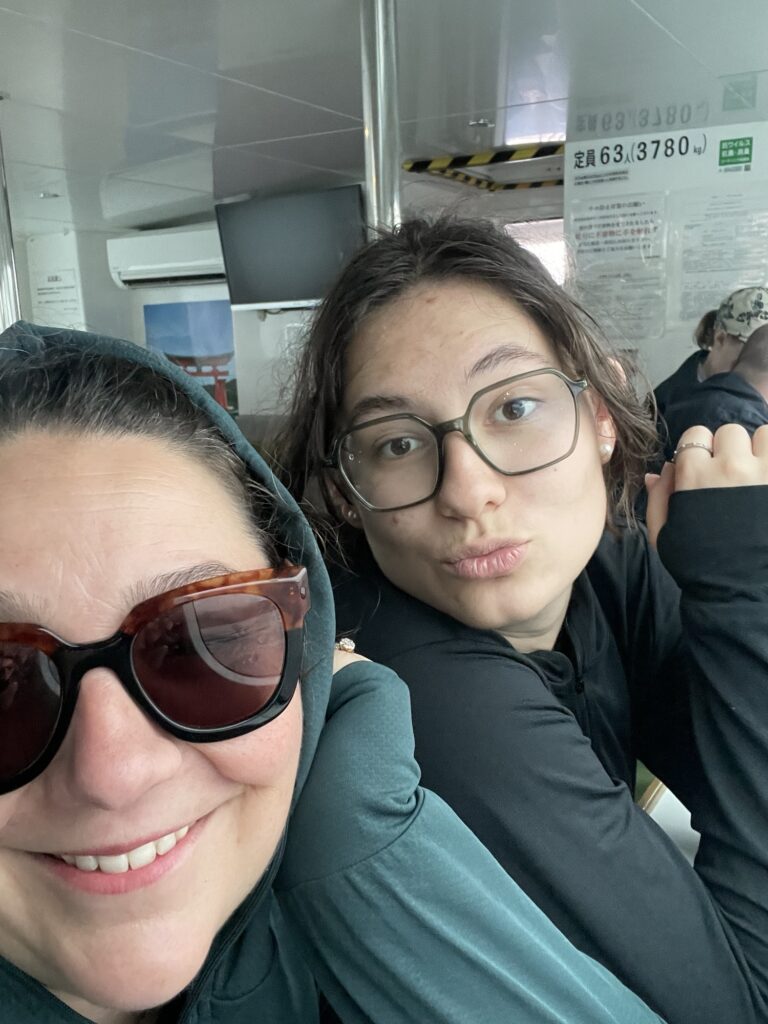 3/4h de traversée jusqu’à Hiroshima, dans un bateau avec la Clim réglée sur 15 degrés je pense! 🤨 Heureusement qu’on trimbale nos vestes Uniqlo airism partout! Ultra légères, sèchent en 2 minutes, capuches pour éviter les courants d’air, le top!