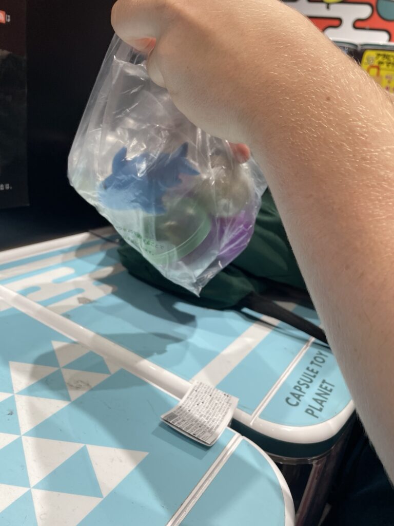 Verdict: je voulais gagner un petit sac. J’ai obtenu une boule dans lequel je trouve un sac qui n’est pas mon préféré. Frustrée, j’aurais pu continuer à mettre des pièces si je n’étais pas au courant de la technique!
