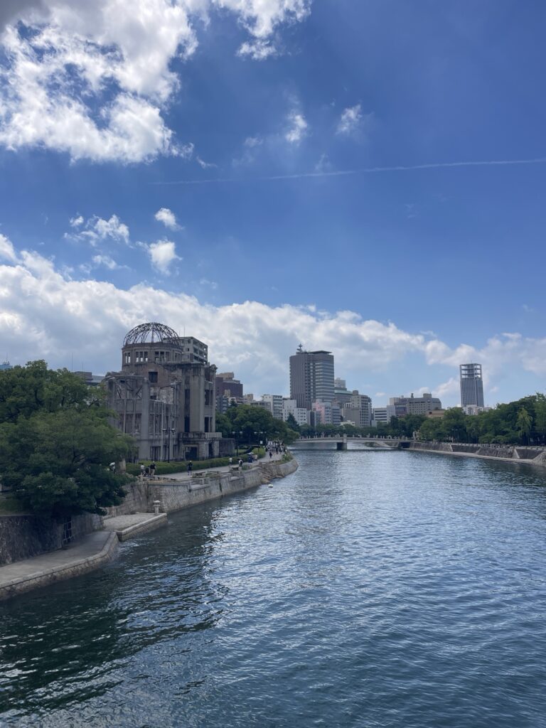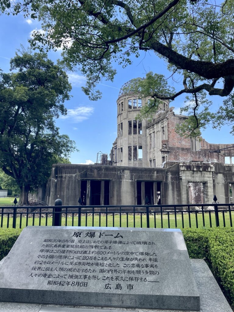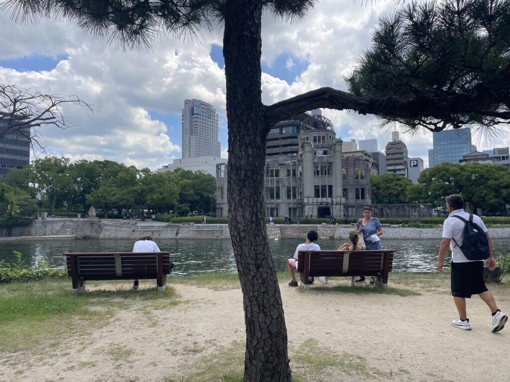 Il fait une chaleur étouffante déjà de bon matin, on prend un tram vintage pour se rendre au Dôme de la préfecture pour la promotion de l’industrie, seul bâtiment à être resté plus ou moins debout après l’impact…