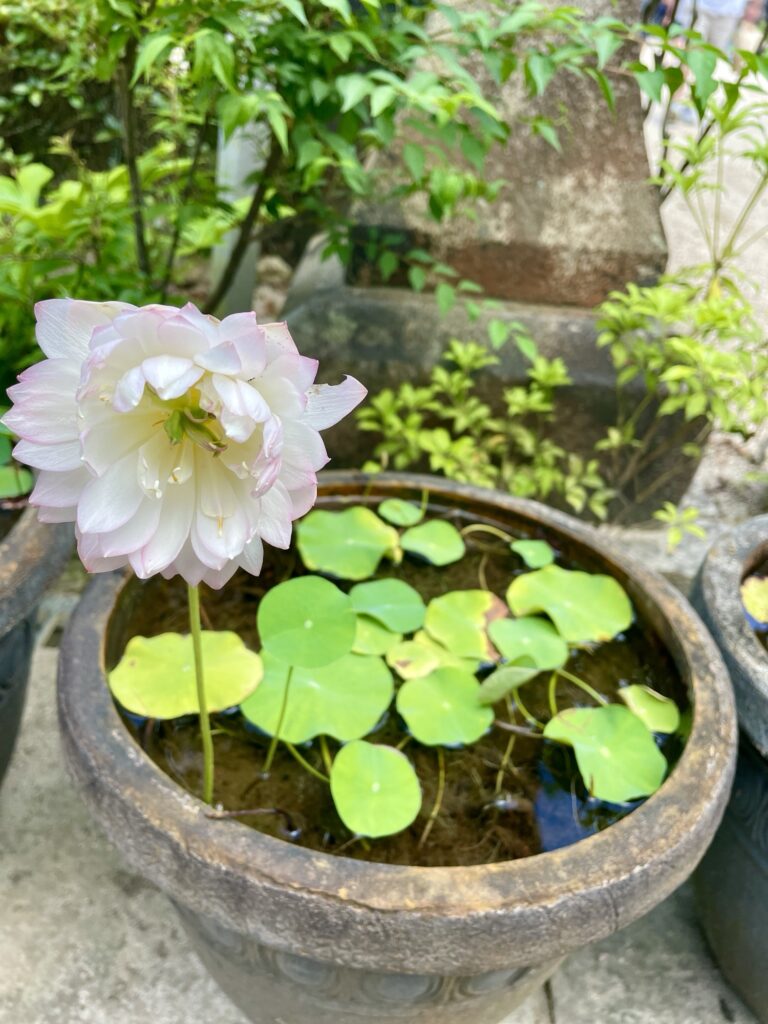 Au-delà de ses escaliers rutilants (et ses moulins à prières renfermant des sutra à faire tourner en entrant) et de ses bâtiments majestueux, c’est l’ensemble des figures bouddhiques disséminées dans le temple qui nous séduit!!! . C’est un peu une chasse aux trésors et arrivés en haut, on se pose sous une pergola de prières sur lesquelles sont accrochées des boules en verre qui flottent poétiquement au gré du vent en dispensant une musique très agréable… très bon pour la méditation… mais 2 françaises à côté ont décidé de parler fort et nous gâchent un peu le moment…
