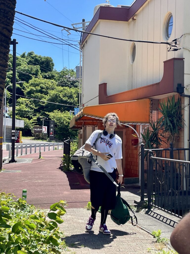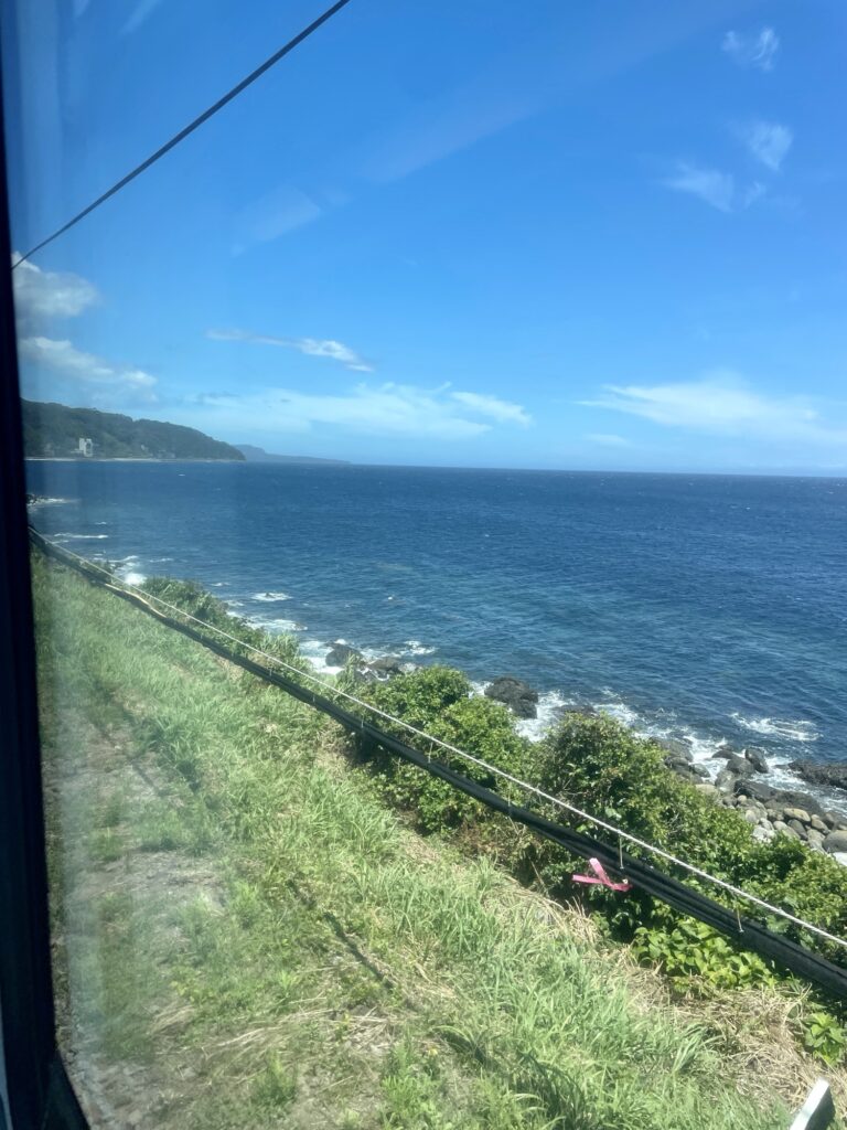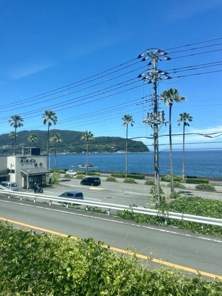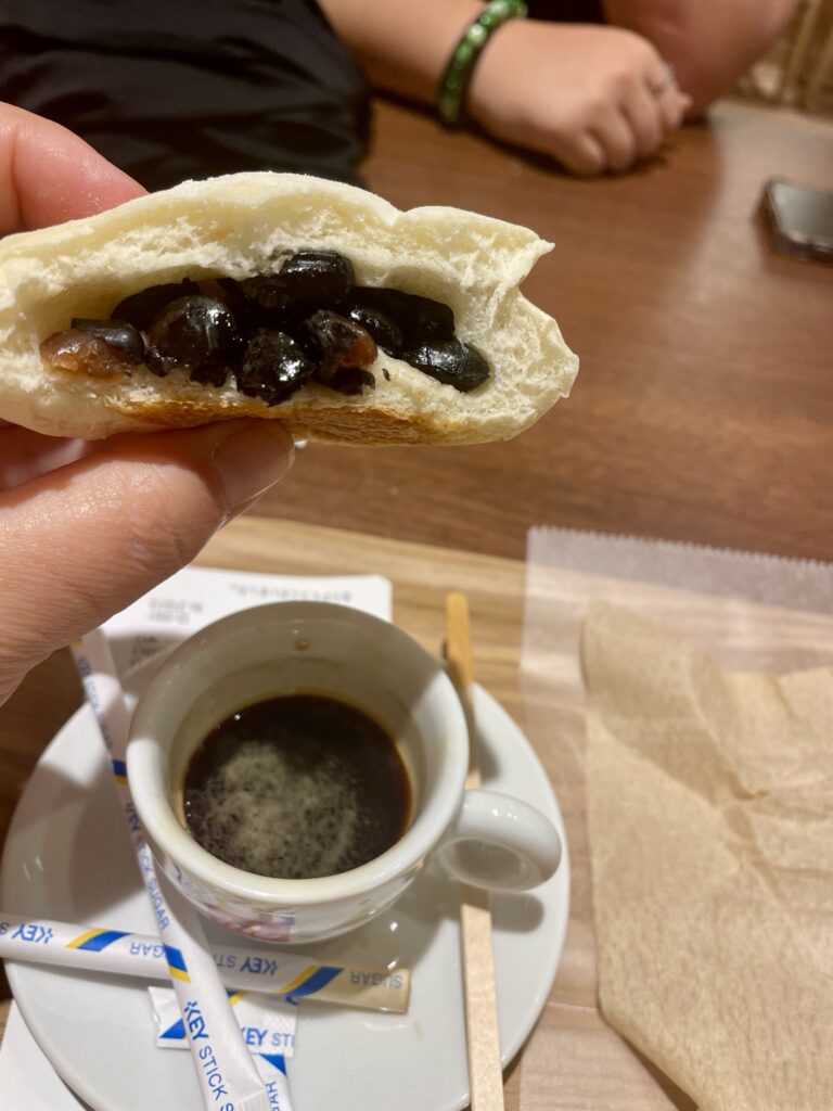 On a transité jusqu’à Atami pour la valise, on a pris un expresso au bar, le 2e des vacances, avec un petit pain sucré aux haricots entiers… c’était une tuerie!