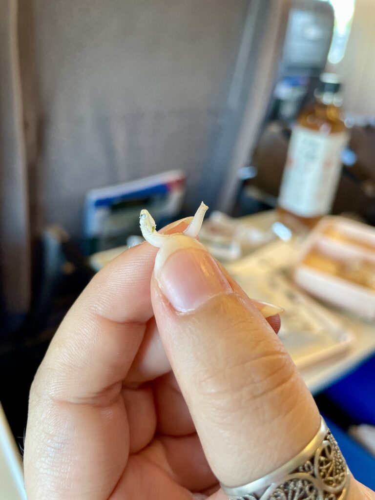 Tiens, Louise s’appercoit à la fin du bento que ce ne sont pas des jeunes pousses de lentilles … mais bien des alevins de poisson! 😂😂😂