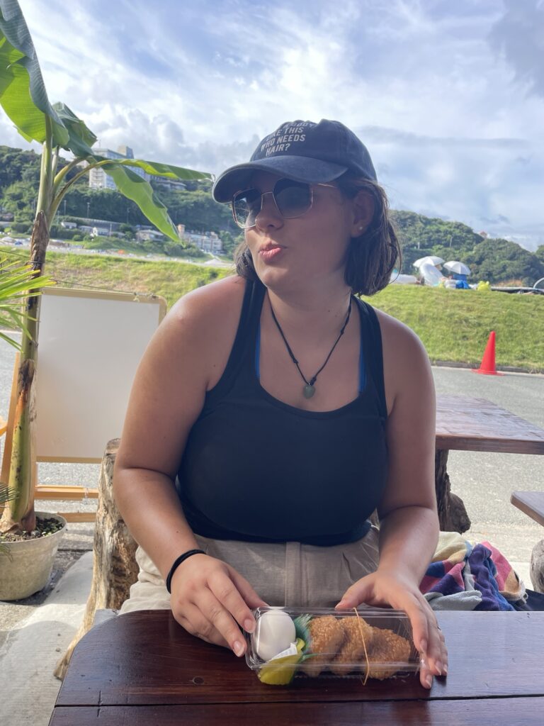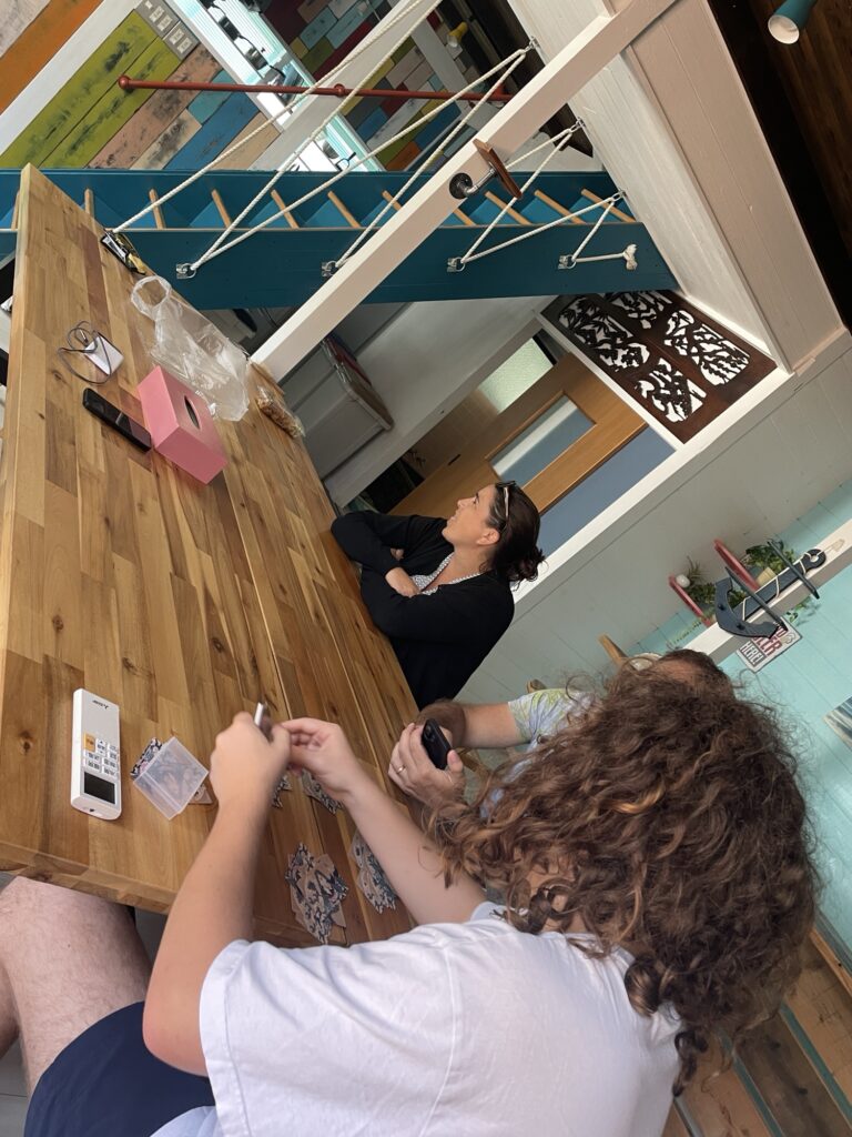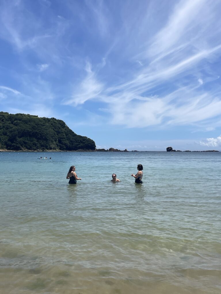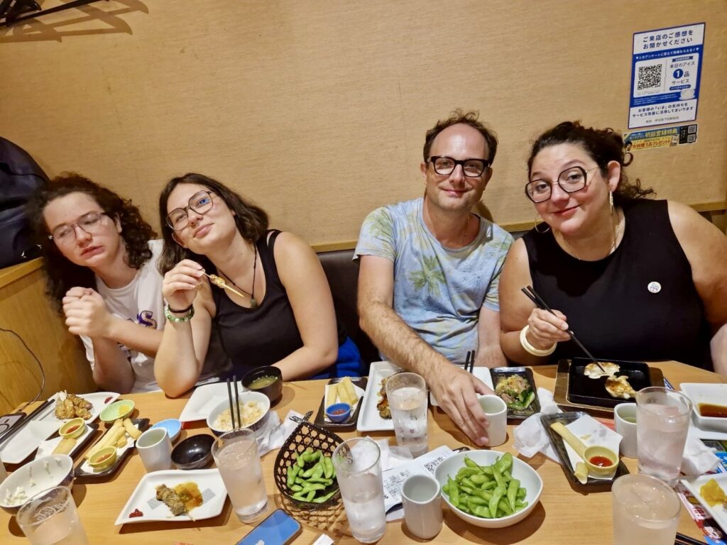 On s’est retrouvé pour une glace vers 16h au café de la plage! les gars ont passé l’aprem dans l’eau et ont rencontré des Anglo-japonais avec qui ils ont lié connaissance à la façon des ados… « tu sais comment on dit chibre??? » 😭😭😭