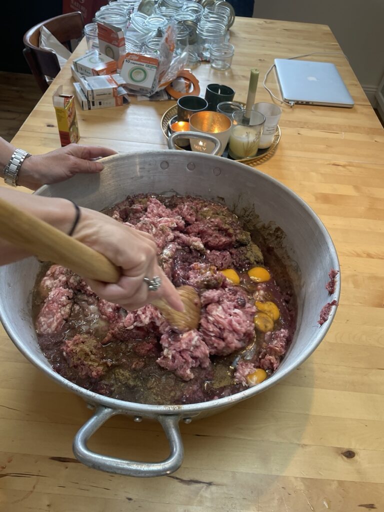 J’avais donc invité Sabryna à venir préparer notre mixture et en ouvrant, catastrophe! On a acheté notre viande chez un grossiste (9kg pour 54€!), rien n’est mixé! Merci le robot Compagnon!