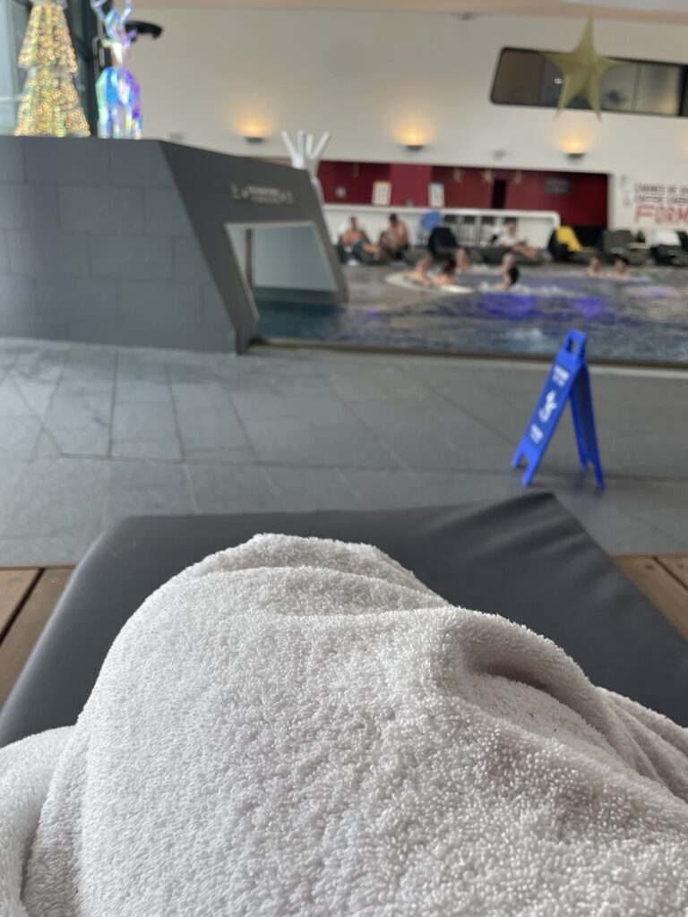 et hop, j’ai profité de mon cadeau de Noël, une matinée à l’aquamotion, coté adultes!!!! Ce qui veut dire piscine intérieure et extérieure, bulles, piscine lecture SANS BRUIT!!!!!