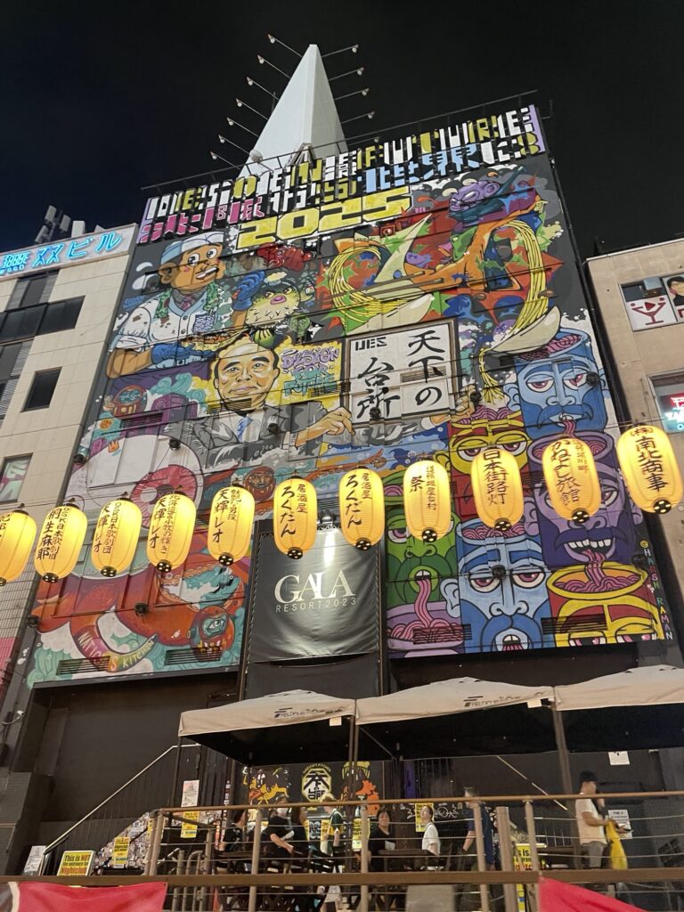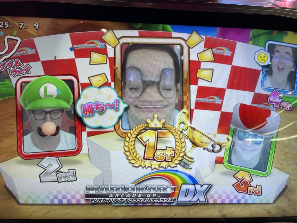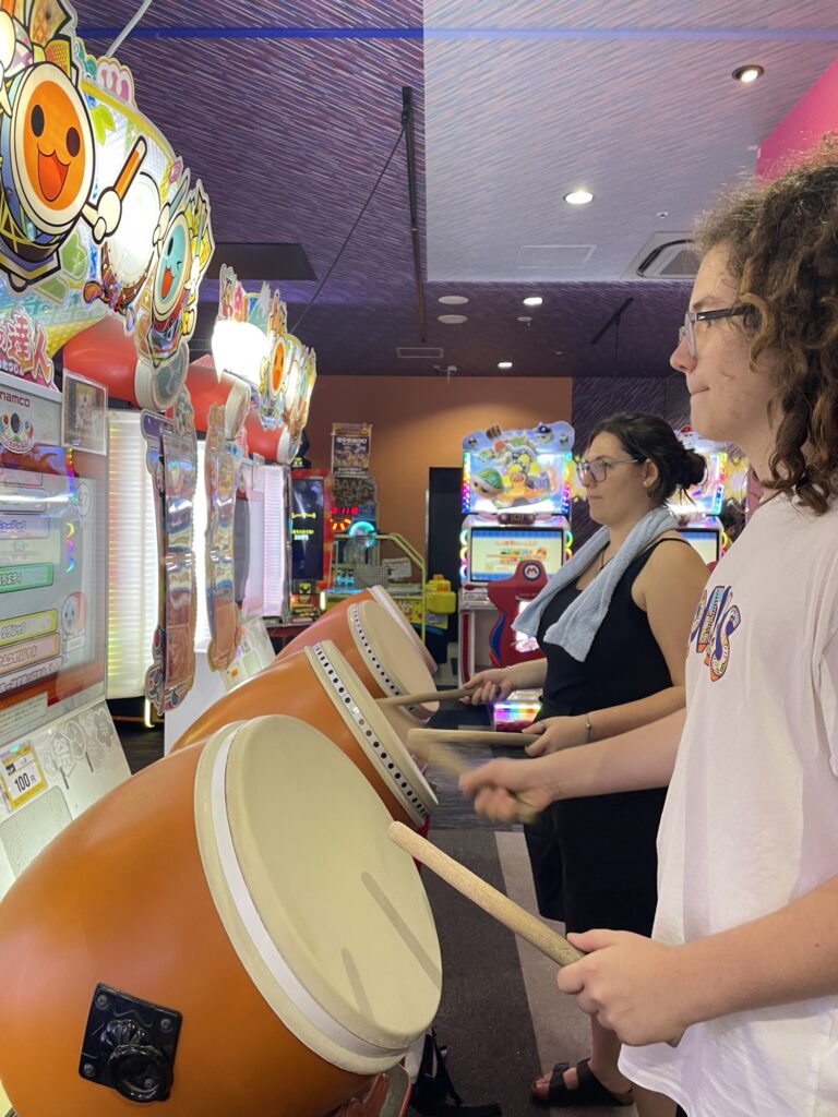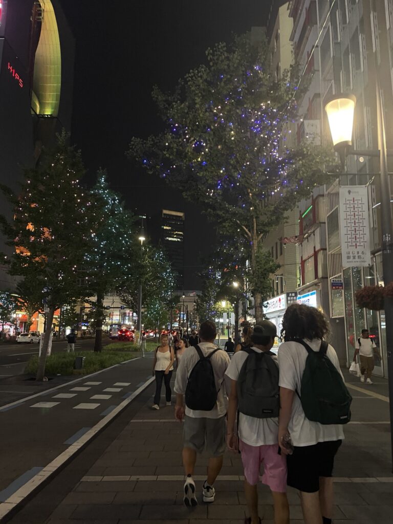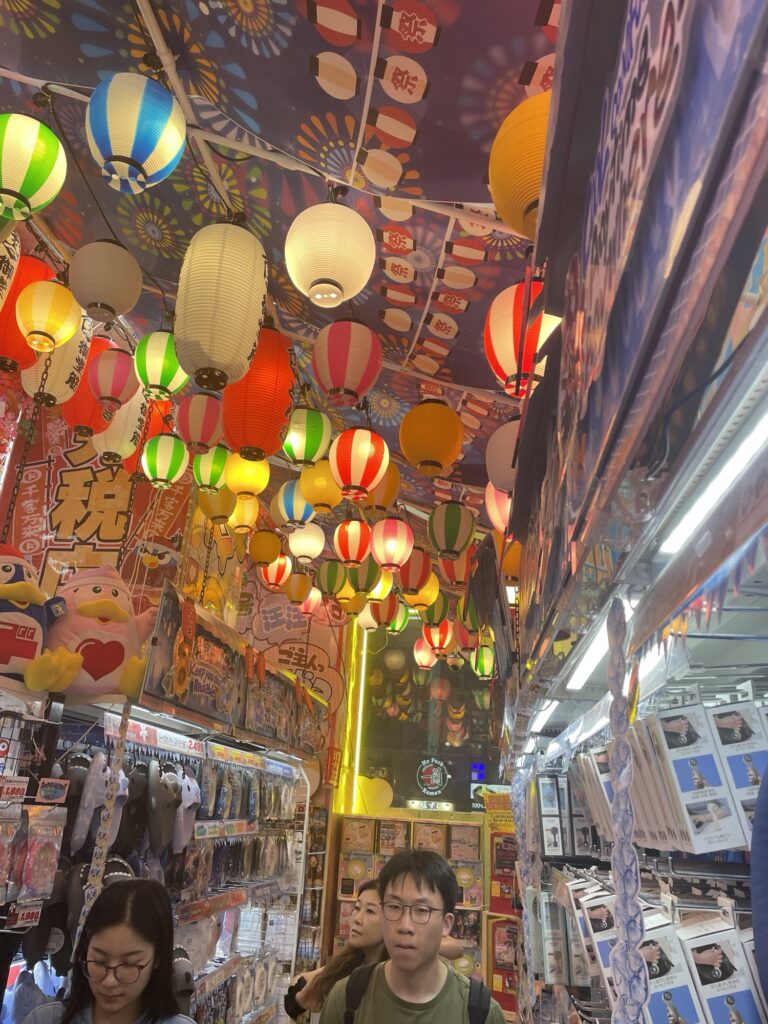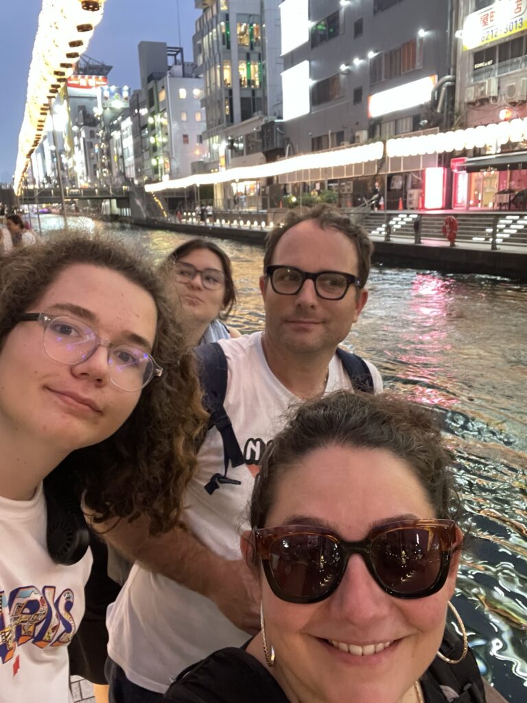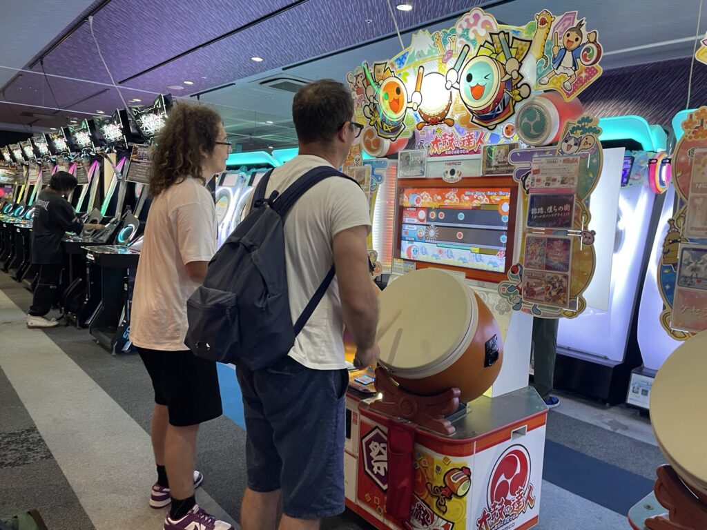 Il faut savoir qu’au Japon, au delà du risque sismique, l’été est la saison des typhons. Il est donc conseillé aux touristes de télécharger des applis de catastrophes naturelles afin de connaître les gestes et mesures d’urgence traduits en anglais… pas bête! Il pleut donc des cordes, les copains sont trempés et nous rejoignent dans l’antre climatisée! 🎉
