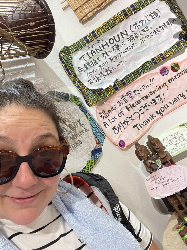 Au Liberia, on se fait remarquer par nos frères Africains car on parle français! Ils sont Guinéens (Conakry) et nous emmènent sur leur stand! On rigole, on rigole (tu me reconnais???? Spéciale dédicace à Marie et Alban!!!) et on ressort avec un bracelet un paquet de fonio (céréale) qu’Octave voulait absolument goûter 😅. Ces gosses m’épuisent mais c’était vraiment un bon moment!