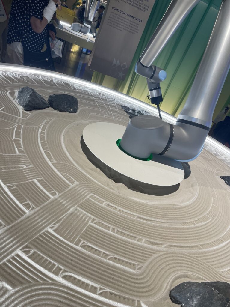 On va au pavillon de l’UE qui est absolument nul à chi** . Un robot dessine un jardin japonais… 🤷🏻♀️