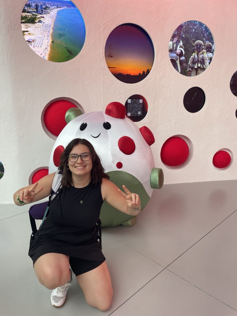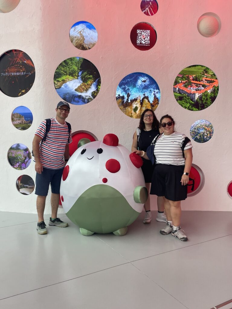 Alors la Bulgarie, c’est l’histoire de Lactochan, la bactérie du yaourt bulgare qui est présentée à l’empereur Hirohito à l’expo universelle d’Osaka en 1970… alors que le Japon ne connaît pas encore le yaourt! 3 ans après ils importent je savoir faire et installent une usine, fou! Ce qu’on retient, c’est que les Bulgares sont trop sympas, que le pays a l’air top et qu’on veut trop y aller! Pour rester dans le thème de l’expo, ils organisent un immense sondage dans le « show » et on doit choisir parmi 3 valeurs fondamentales pour le futur et 3 compétences. Super intéressant (dit la prof de géo!!!).