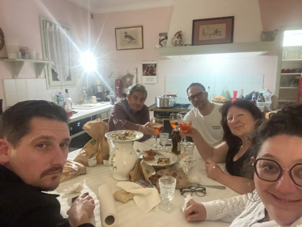 Après on a repris des apéros, on avait chaud, il y avait du soleil alors on a décidé de manger dehors… mais sans table! 🤷🏻♀️