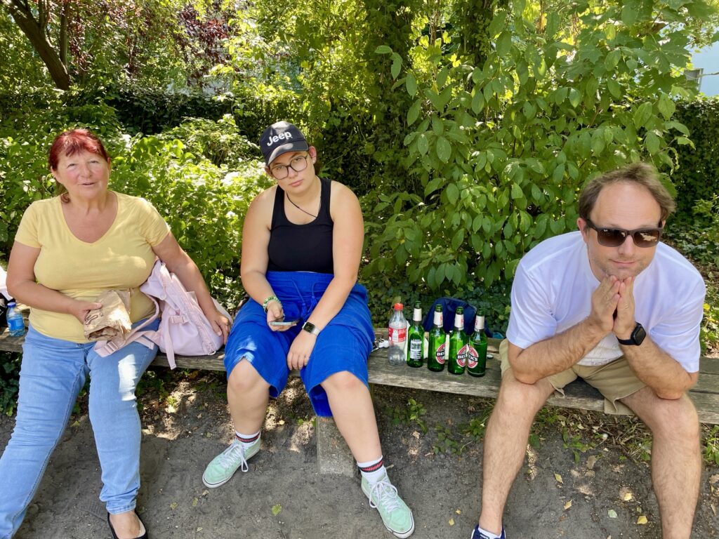Puis petite sieste à l’hôtel: certains en tram et d’autres en vélo 😎😂 alors qu’il faisait 30 degrés à Brême! On avait tenté la piscine mais c’était blindé!