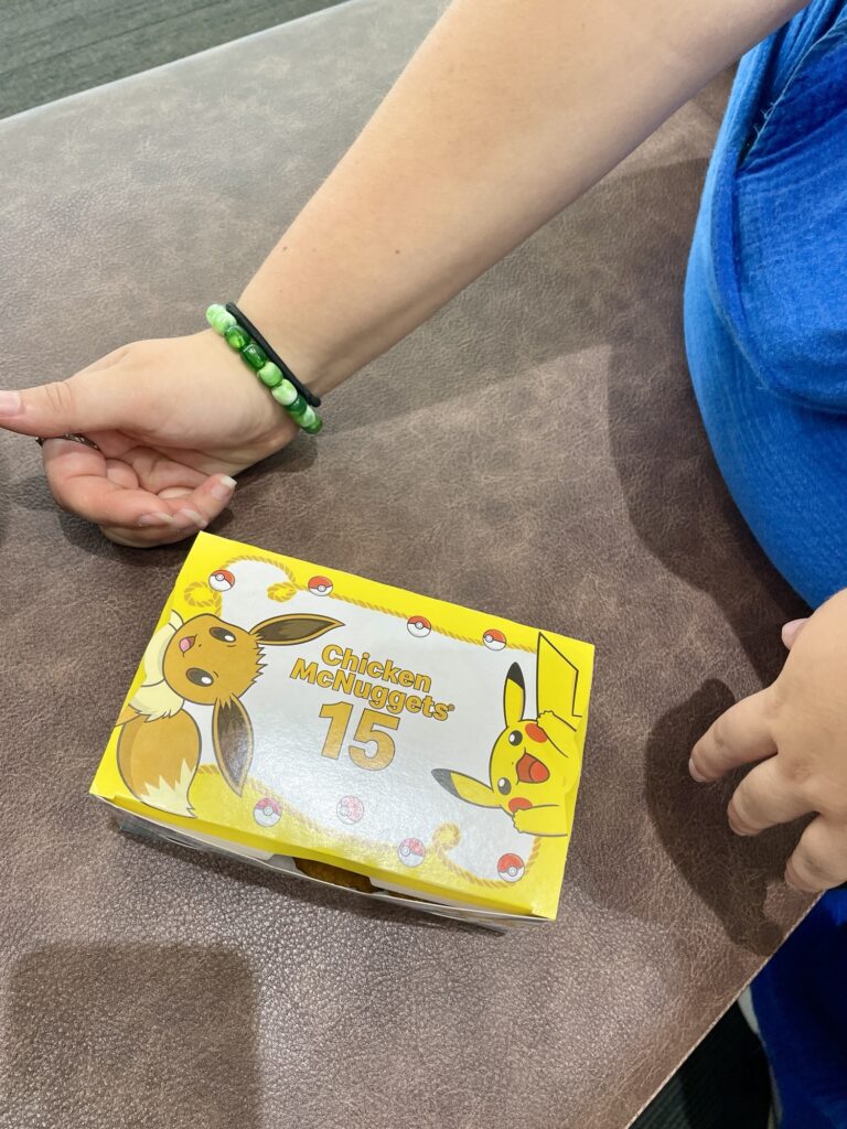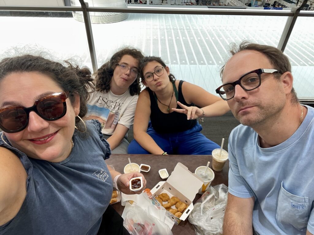Arrivés à l’aéroport, tout le monde crie famine, on autorise des nuggets! Parce que même la boîte est belle… 😍