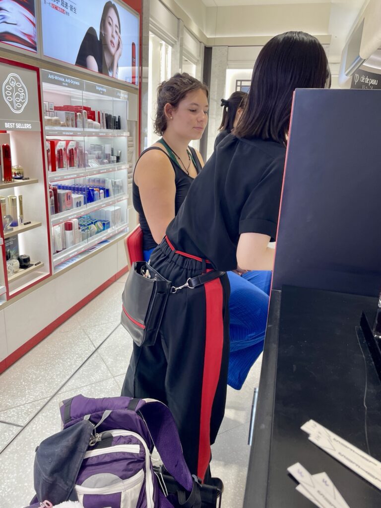 On a le temps de traîner au duty free et c’est ici qu’on trouve le graal de Louise: ça fait 15 jours qu’elle cherche le fond de teint Shiseido… (parce que je lui avais passé le mien il y a qq années.) et ici c’est la « queen » : on l’assoit, on lui essaie les produits… wouahhhh quelle chance! Pour 32€ elle a trouvé ce qu’elle ne voulait pas acheter en France à 80€! Parfait!